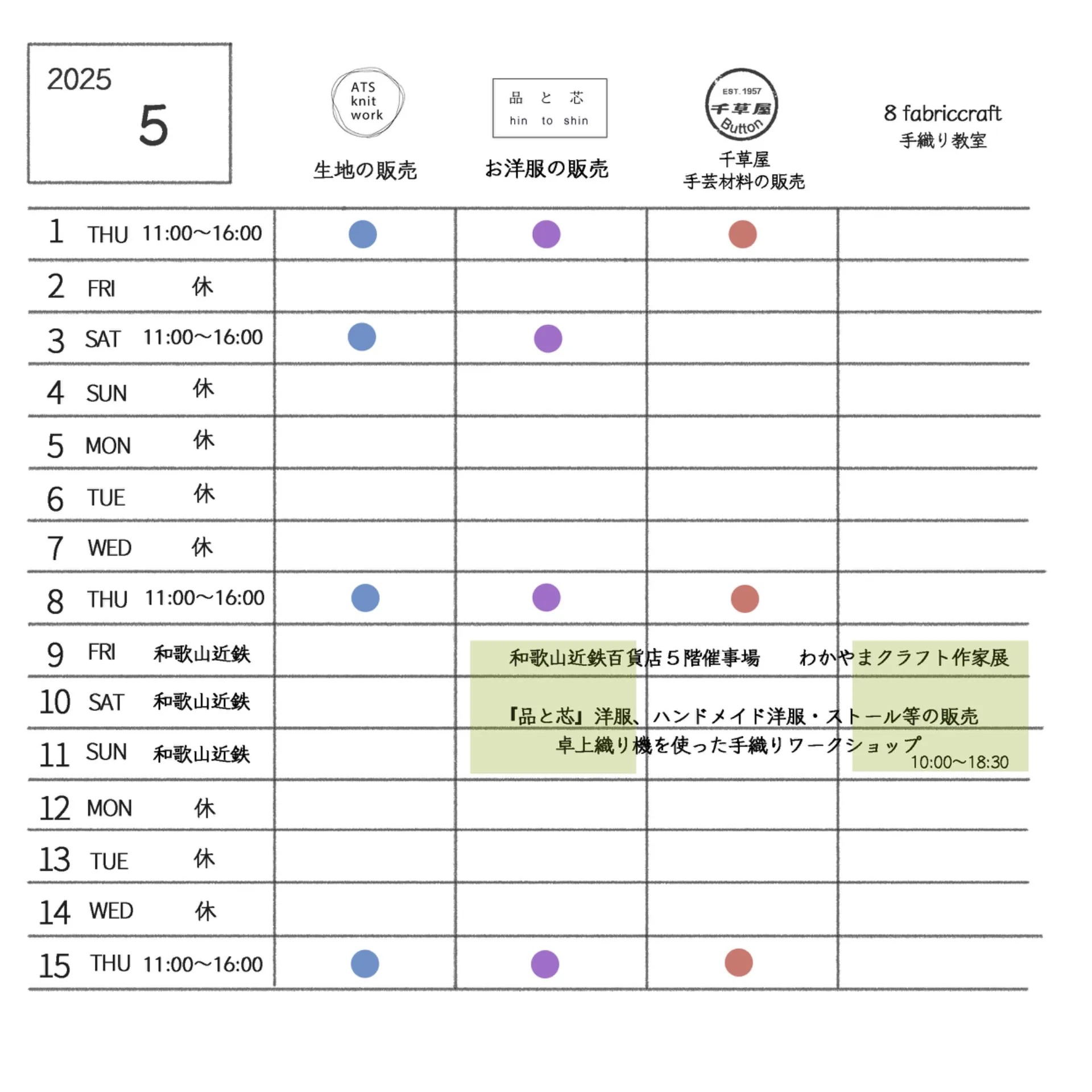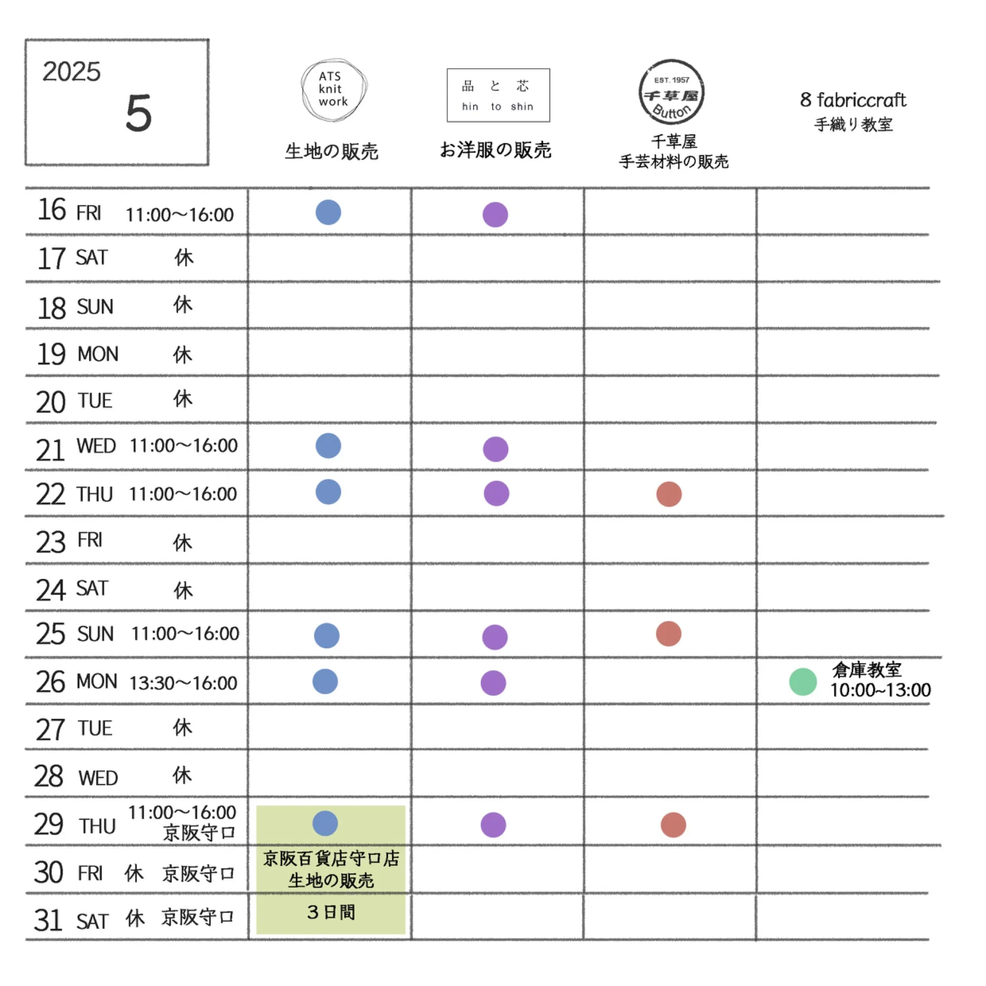☆2025年5月 倉庫店舗営業日のお知らせ☆