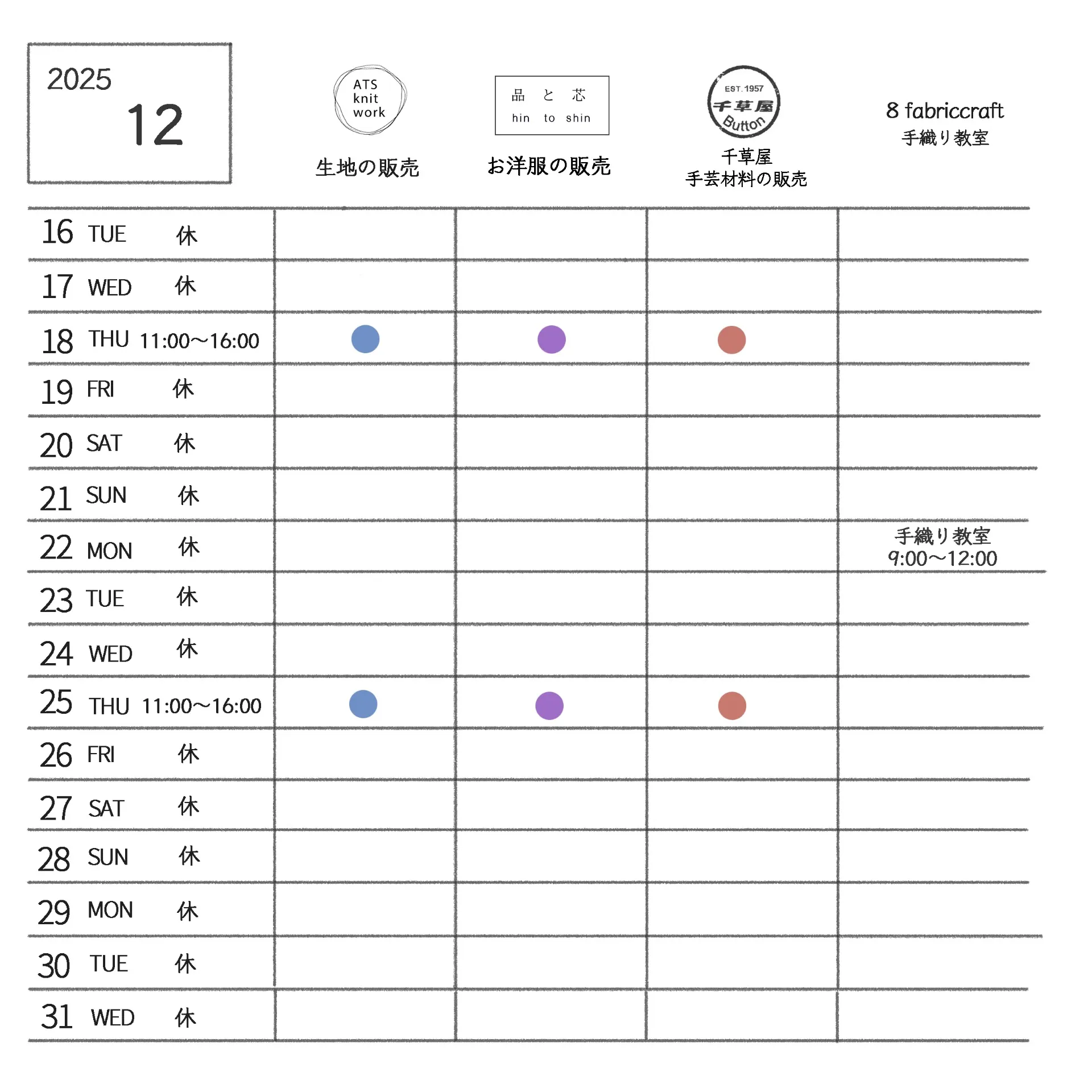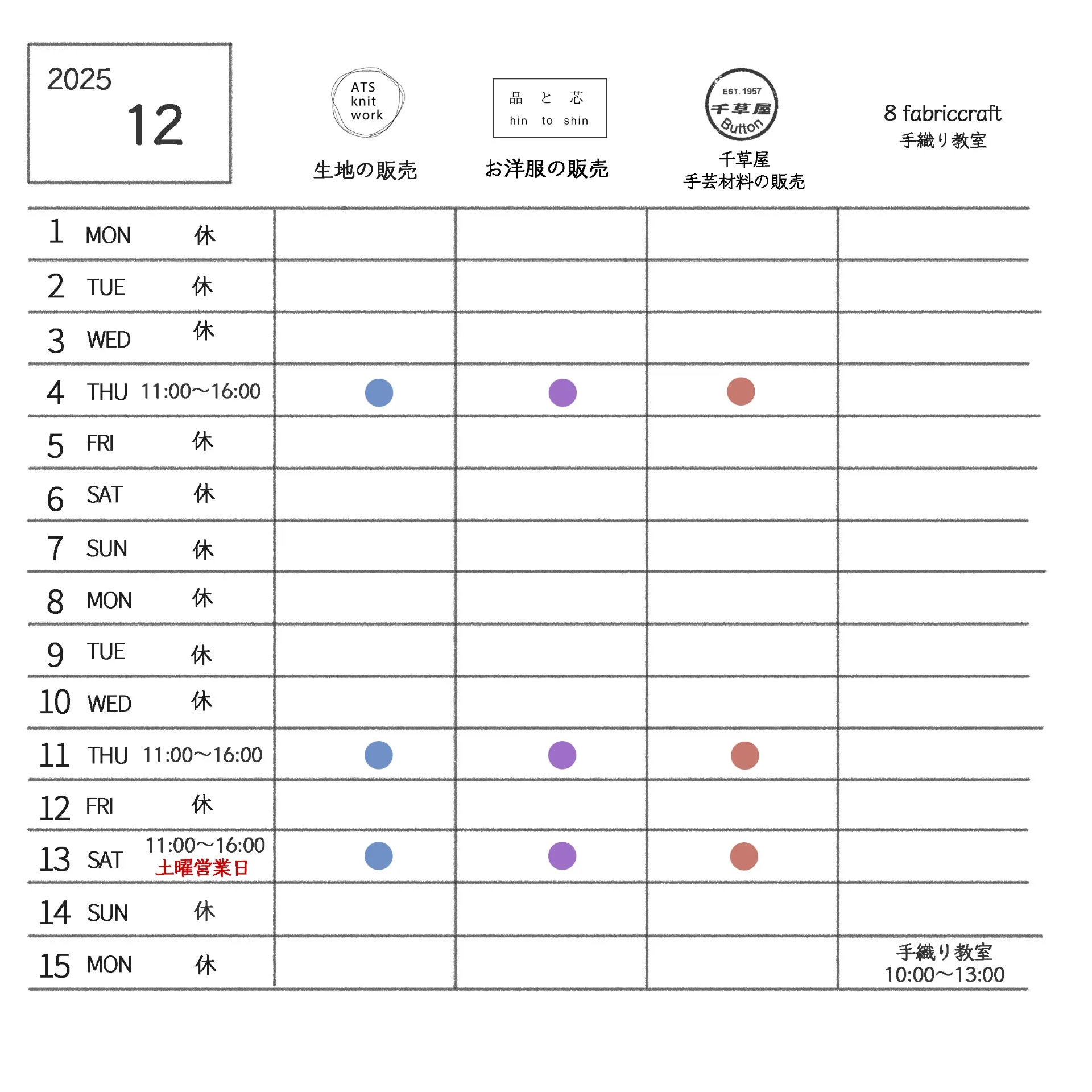 ☆2025年12月 倉庫店舗営業日のお知らせ☆